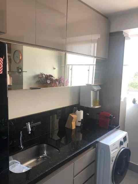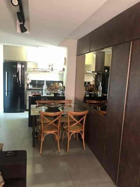APARTAMENTO POSSUI 02 QUARTOS CLAROS E AREJADOS COM ARMÁRIOS DE BOA QUALIDADE, SALA PARA DOIS AMBIENTES COM PAINEL DE MADEIRA, COZINHA AMERICANA COM ARMÁRIOS, ÁREA DE SERVIÇO SEPARADA, BANHO SOCIAL COM BOX DE VIDRO E ARMÁRIO.