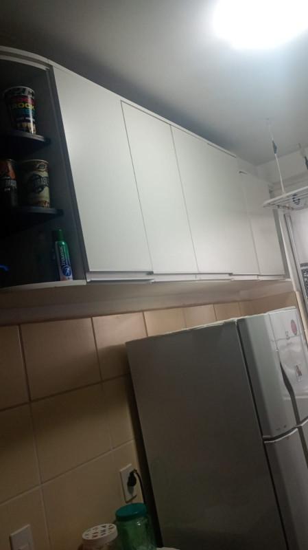 - Cozinha estilo americana com bancada e armários;