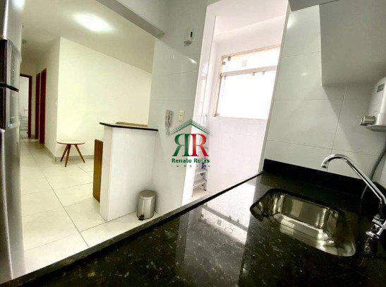 Apartamento com 70 m2 , composto por 2 quartos, 1 sala para 2 ambientes, 1 banho social com armários e box blindex, cozinha com bancada em granito e armários , área de serviço, 1 vaga de garagem descoberta, 1 elevador social