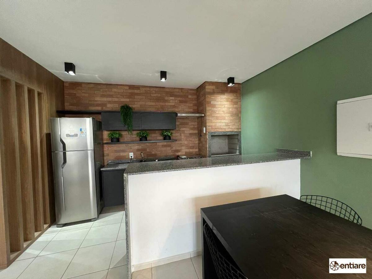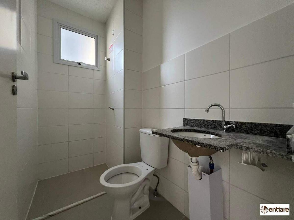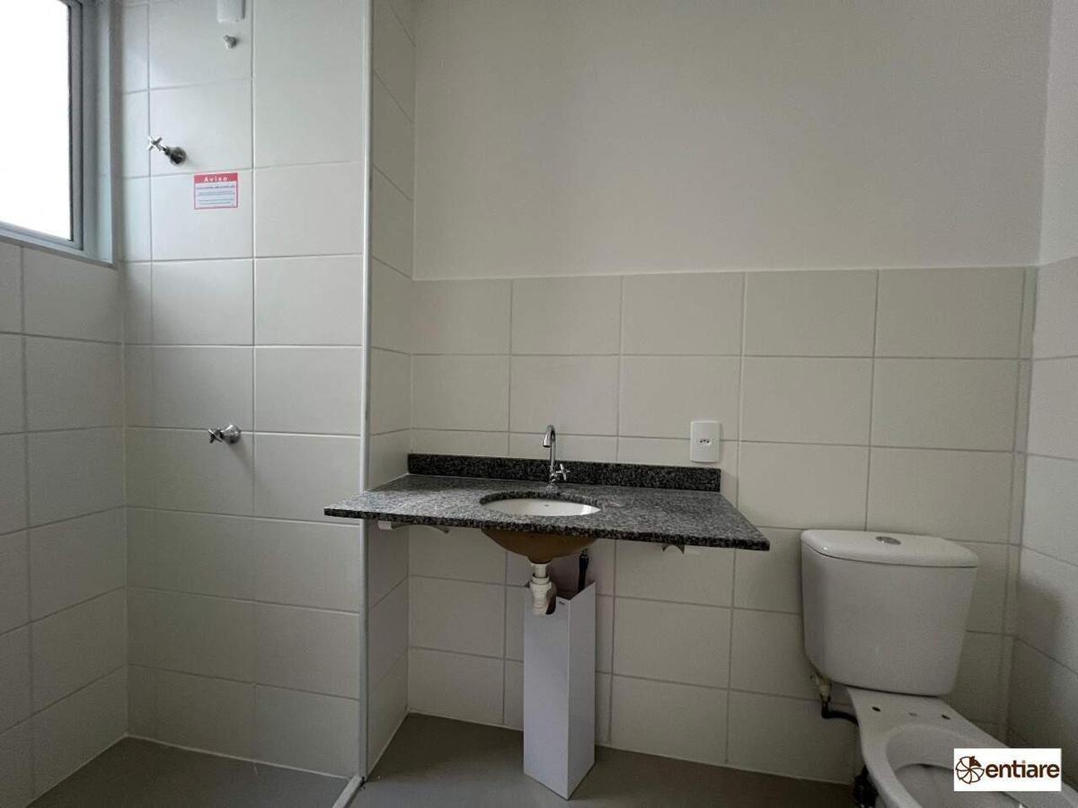 Apartamento de 2 quartos com suíte, sala e cozinha com piso em porcelanato, banho com bancada em granito, planta bem distribuída, claro e arejado.