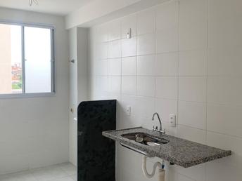Apartamento de dois quartos, cozinha, banheiro social com box, quartos com venezianas nas janelas piso laminado.