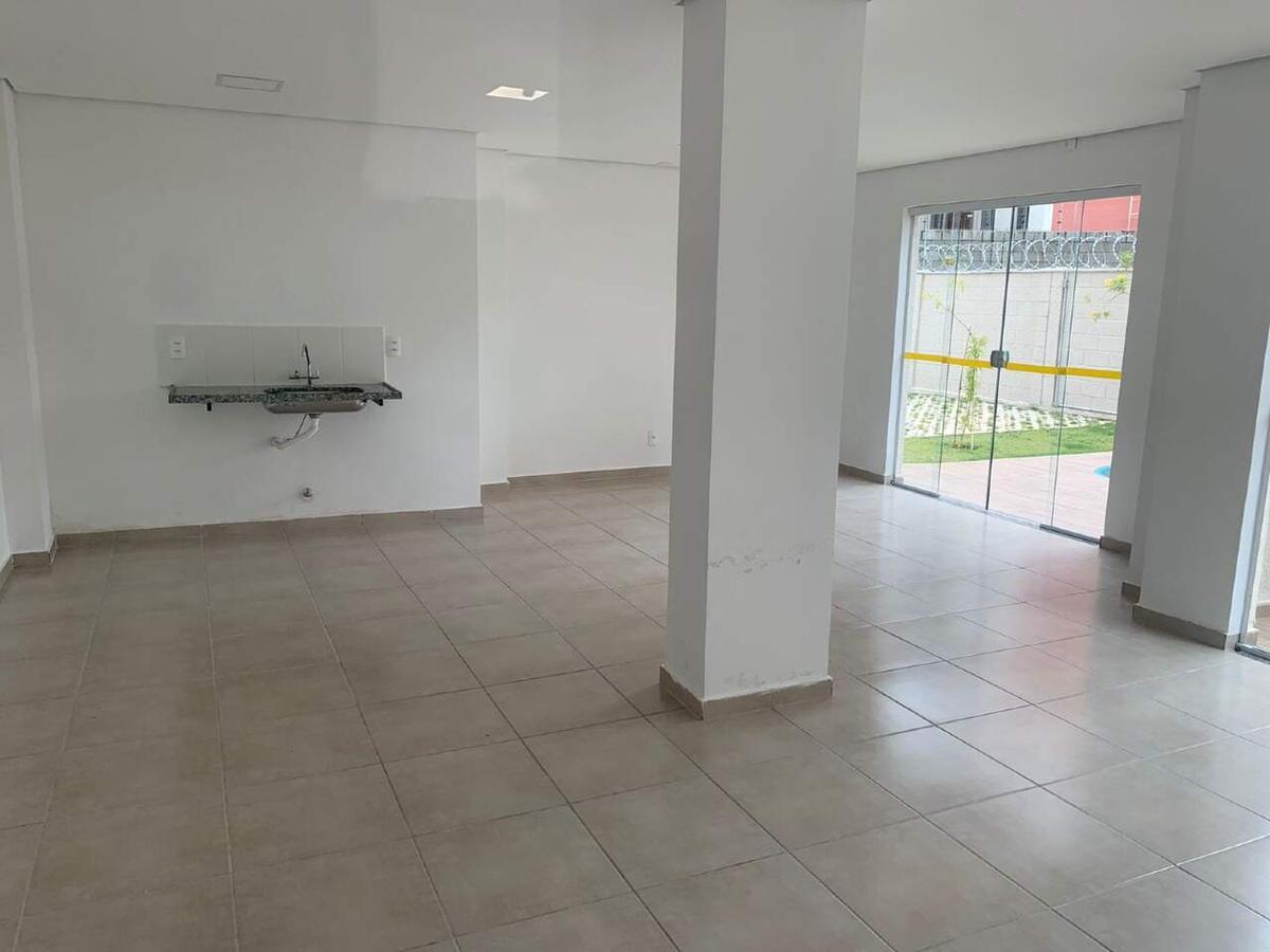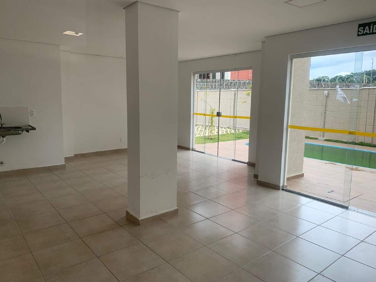Condomínio com apenas uma torre, portaria 24 horas, salão de festas, e piscina.