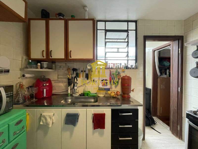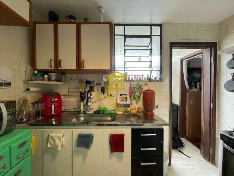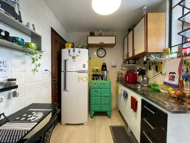 * Cozinha com armários, bancada e piso em porcelanato.