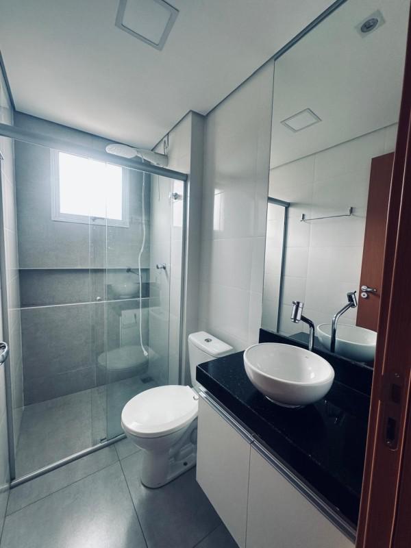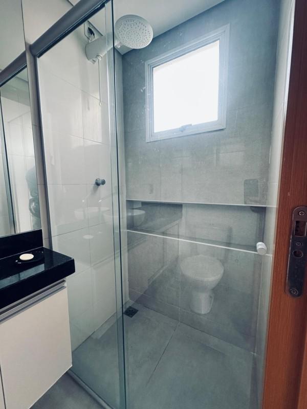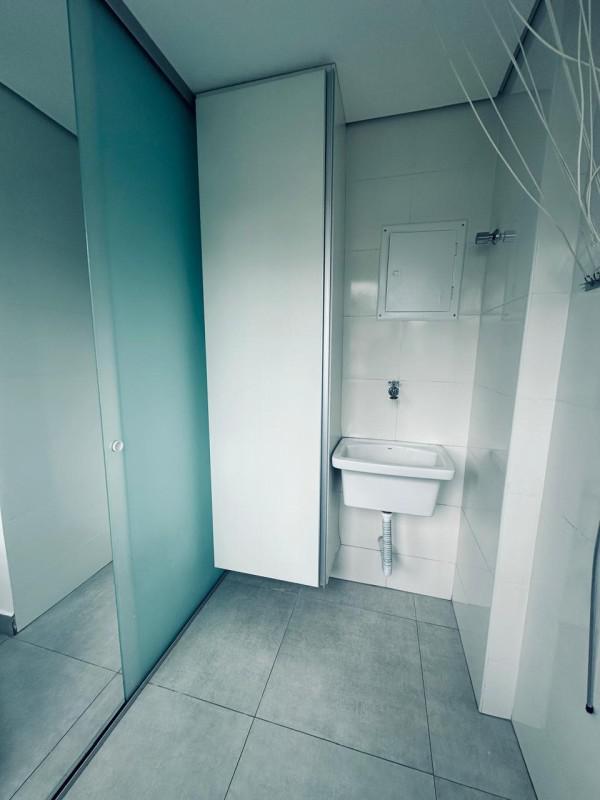 Os banheiros possuem acabamentos impecáveis, com piso em porcelanato, bancadas em granito, box blindex e armários planejados. As esquadrias em alumínio com venezianas trazem elegância e modernidade ao ambiente. Além disso, o apartamento conta com gás canalizado com medidor individual, proporcionando mais economia e comodidade.