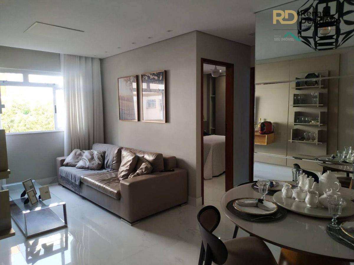 Lindo e raro apartamento no Santa Amélia, contendo 02 quartos ,ampla sala para dois ambientes, piso em porcelanato, 2 quartos com armários, banho social decorado, armário, box em vidro temperado, cozinha espaçosa, com armário clara e arejada, área de serviços, com armário,banho de empregada, portaria 24hs, quadras de esporte, salão de festas, playground, 01 vaga de estacionamento. ótima localização, linha de ônibus, acesso fácil pela Av. Guarapari, Av. Portugal, perto da Lagoa da Pampulha. Os preços e informações, poderão sofrer alterações sem aviso prévio.