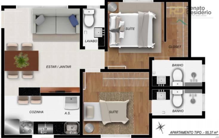Apartamento de 2 quartos com 2 suítes no Santa Efigênia