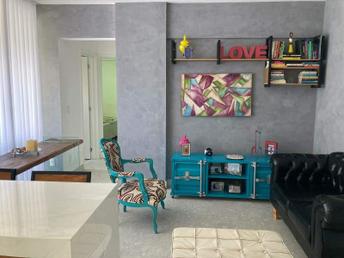 1 sala ampla para dois ambientes, com piso em porcelanato