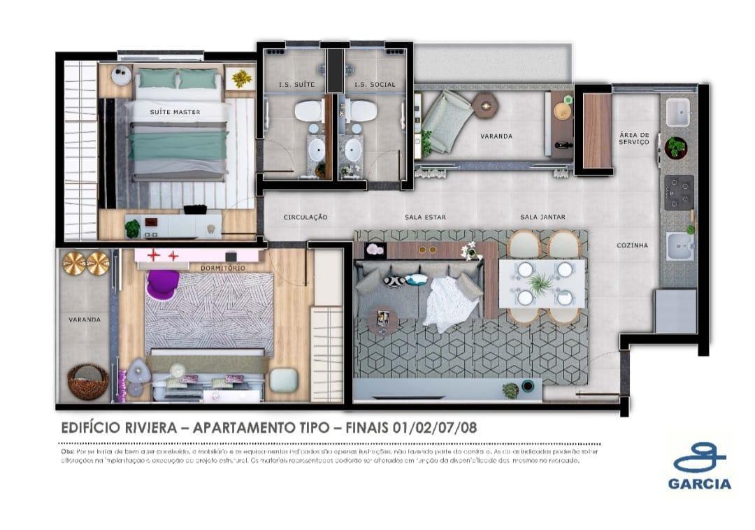 Apartamentos com Finais 01 02 07 08 metragem 66,50 m