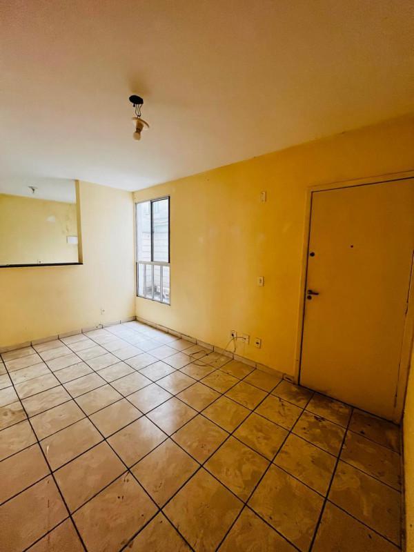 Apartamento com 45m² de área construída, e 6m² área privativa, 2 quartos, banho social, sala ampla, cozinha americana com área de serviço.