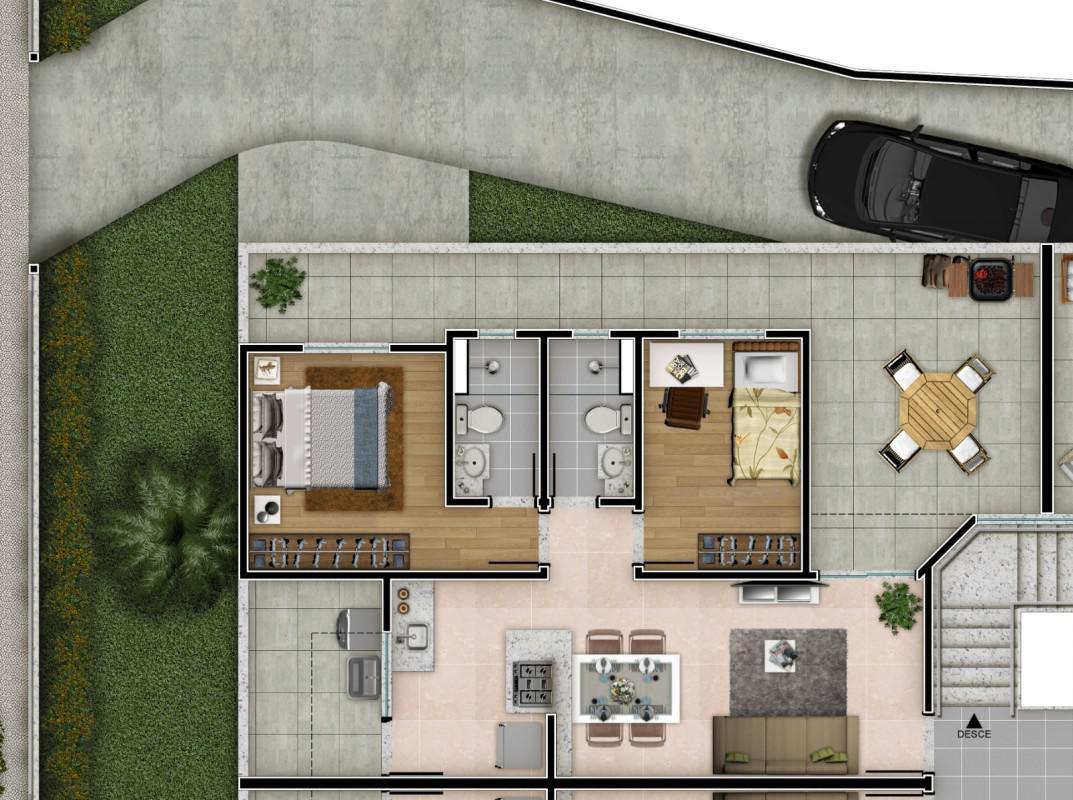 02 quartos, sendo 01 suíte;