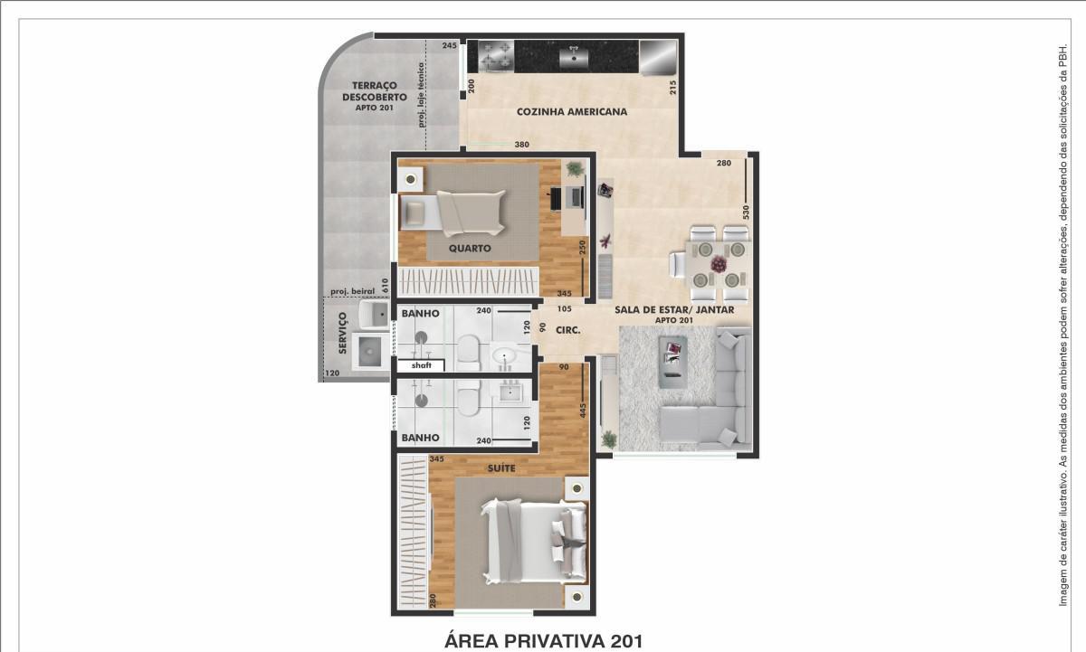 Área privativa: 67m² Quartos: 2 (sendo 1 suíte)