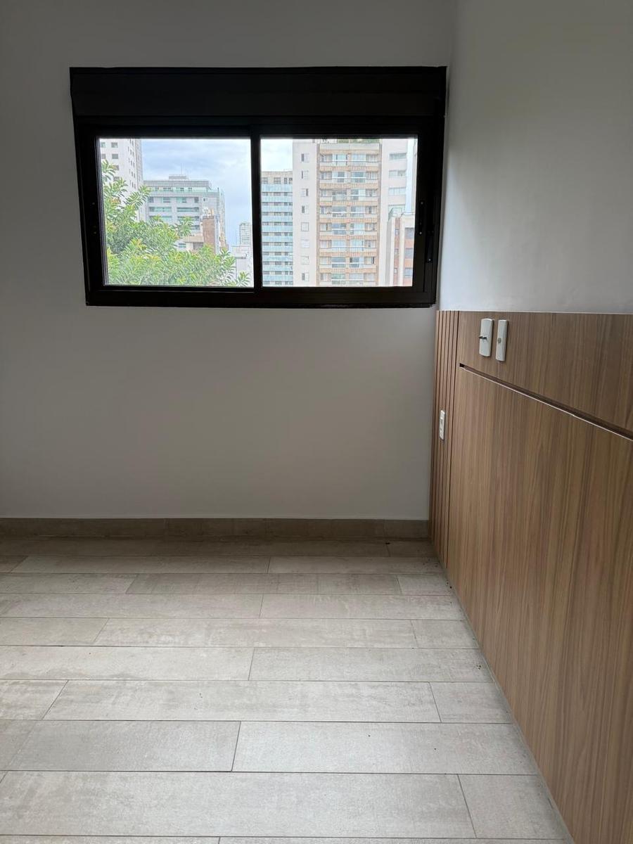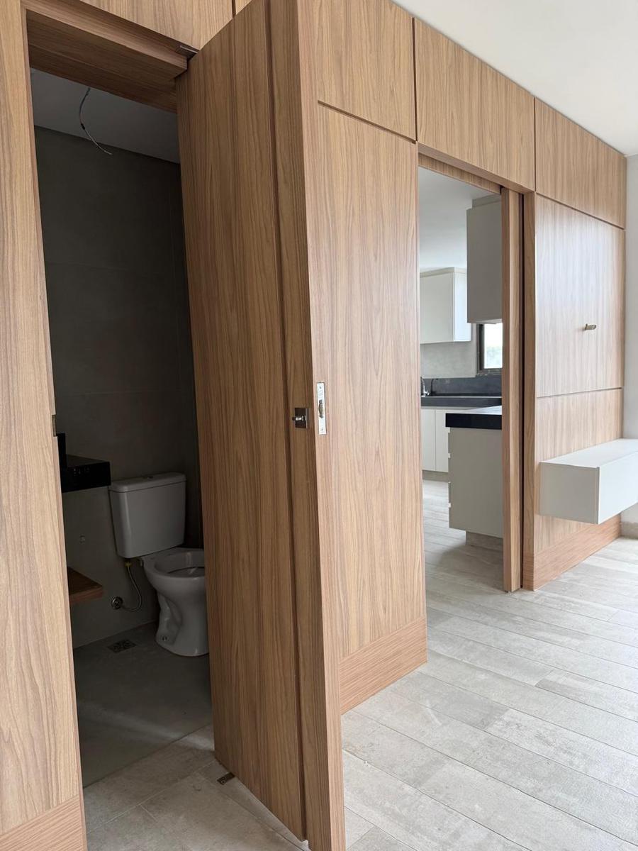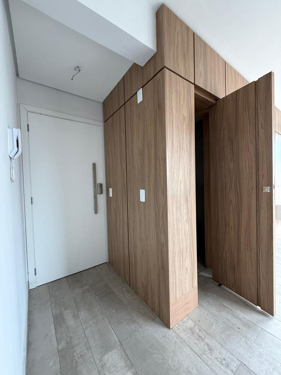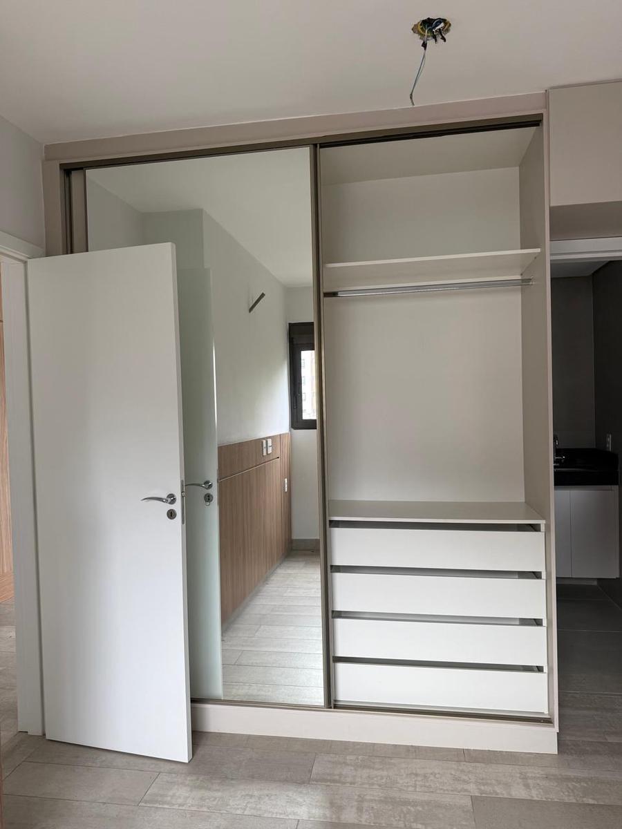 Apartamento com 107m² com dois quartos sendo duas suítes, banheiro social, sala para dois ambientes, cozinha conjugada com área de serviço, lavabo, área externa ampla com duas varadas e duas vagas de garagem em linha demarcadas no G2. Possui linda marcenaria planejada com armários e painéis de madeira, na cozinha, sala, quartos e banhos, bancadas em granito, janelas em alumínio com persianas embutidas, interfone. O prédio aceita animais.