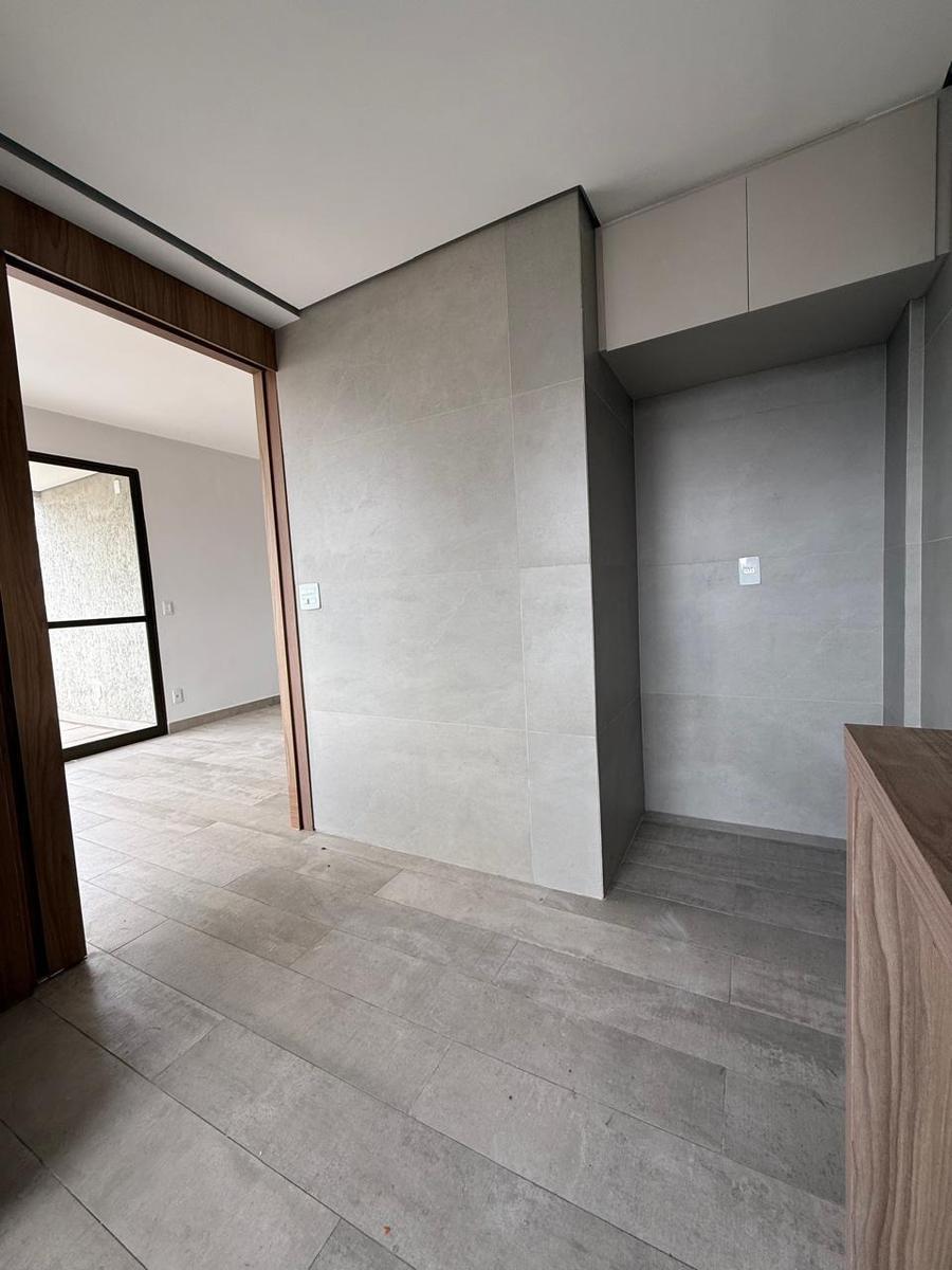 Prédio novo com hall, elevador, portão eletrônico e portaria eletrônica.