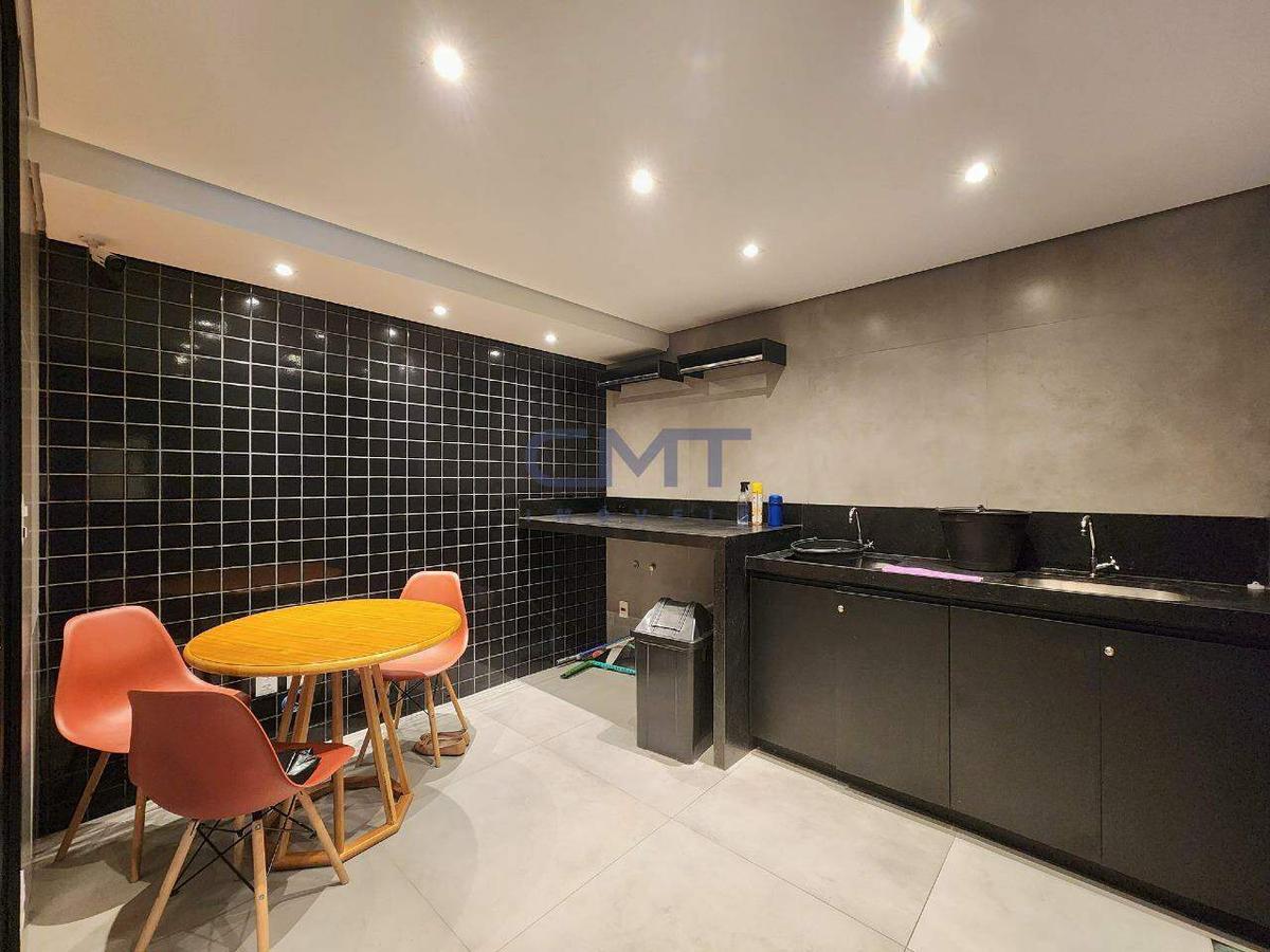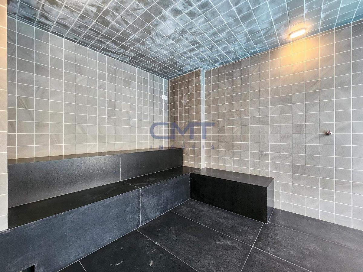 Área de lazer com área gourmet, salão de festas, piscina e sauna.