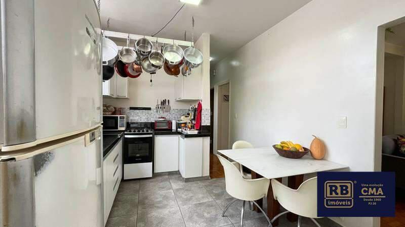 Cozinha é ampla e funcional, com armários planejados, piso em porcelanato e bancada em granito garantindo praticidade