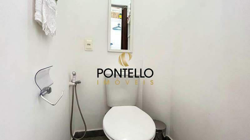 Banheiro social conta com box em blindex, espelho, bancada em granito e pia em cuba
