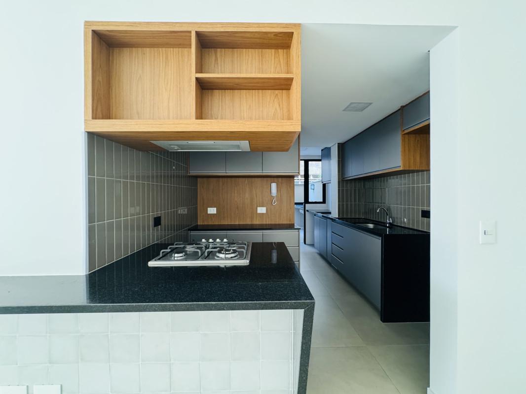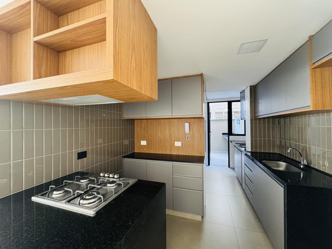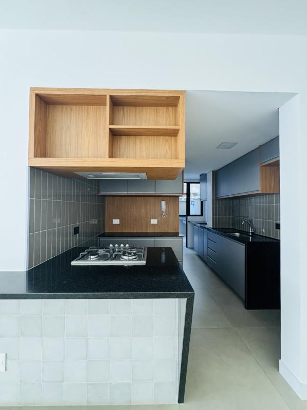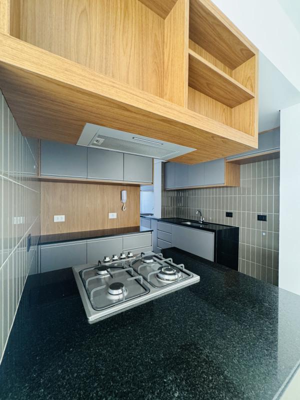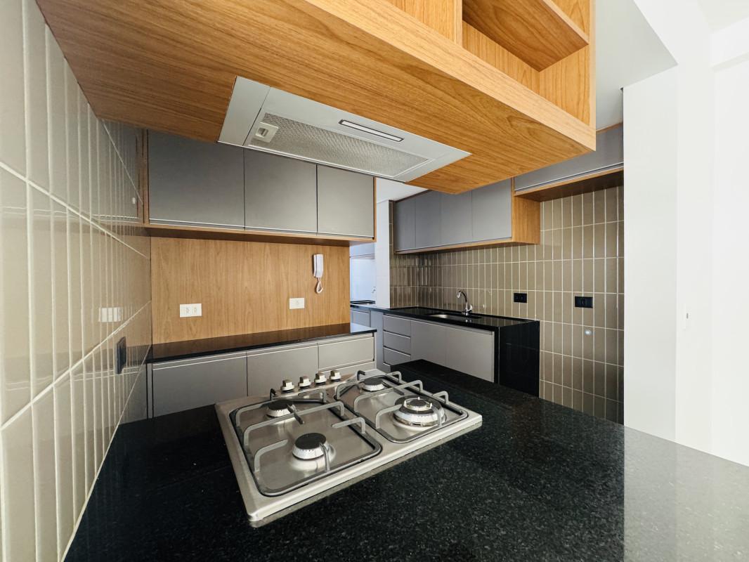 Cozinha equipada com forno elétrico, fogão cooktop Electrolux e depurador Suggar