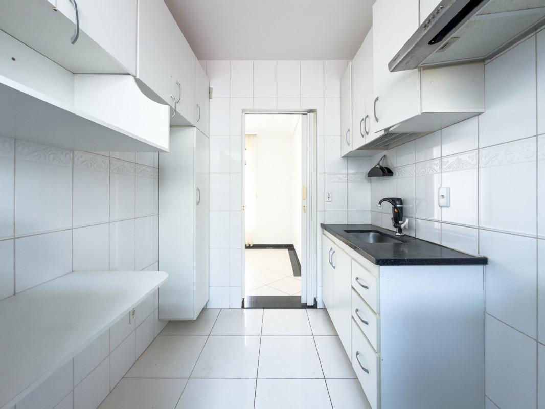- Cozinha conjugada com a área de serviços, piso em cerâmica e bancada em granito. Armários;