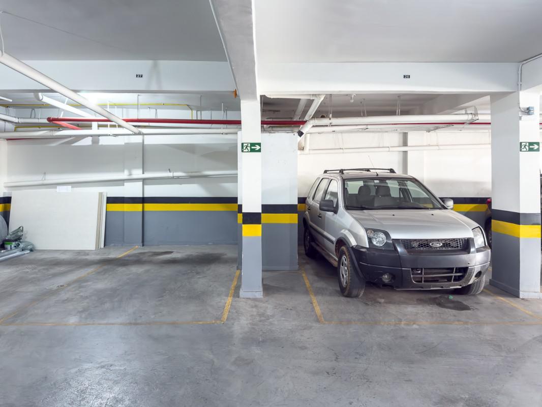 - 03 Vagas de Garagem livres, cobertas e demarcadas, sendo uma isolada por drywall e usada como box exclusivo e fechado;
