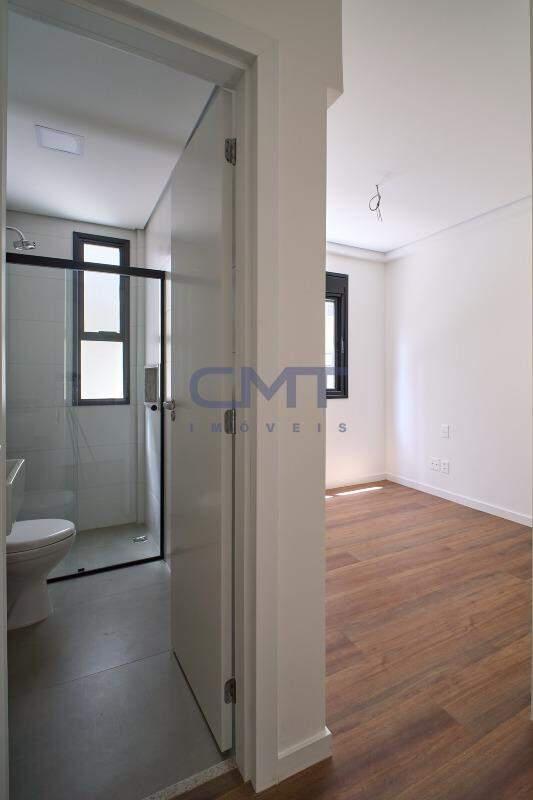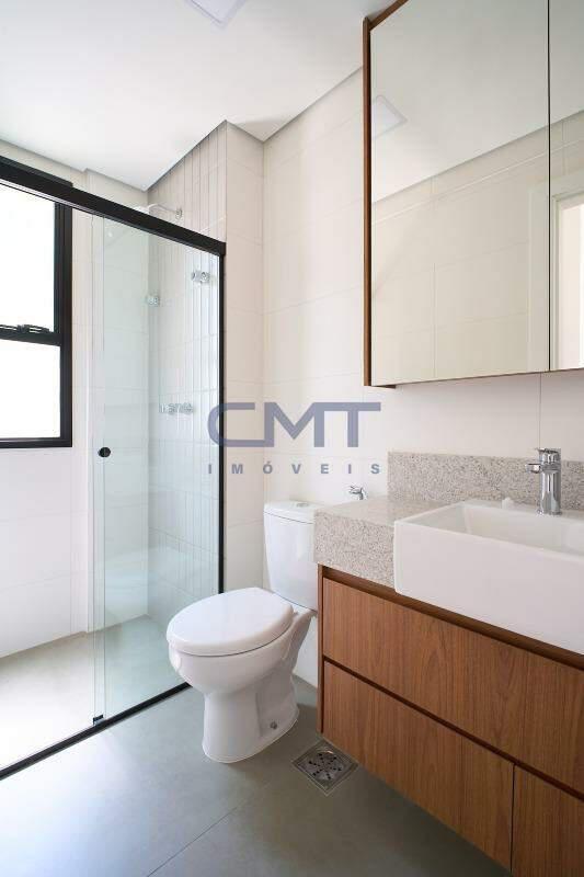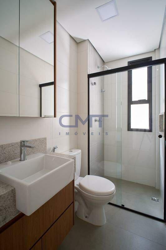 2 amplas suítes. Ambas com box em blindex transparente, armários planejados, piso em porcelanato, bancada em granito e cuba sobreposta.