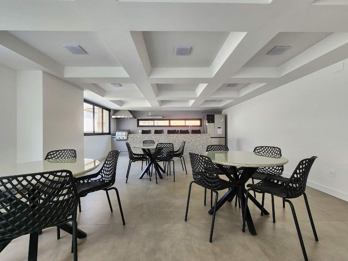 Área de lazer com área gourmet, churrasqueira, salão de festas, academia e piscina. Já há um ambiente reservado para espaço Kids.