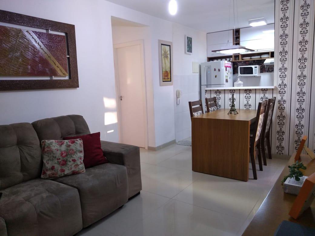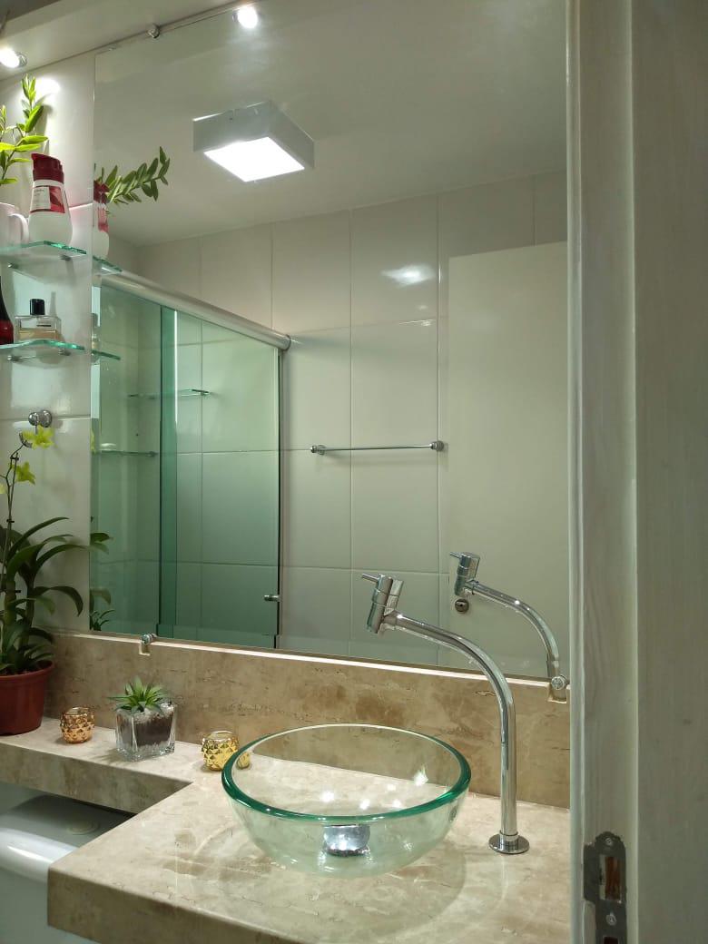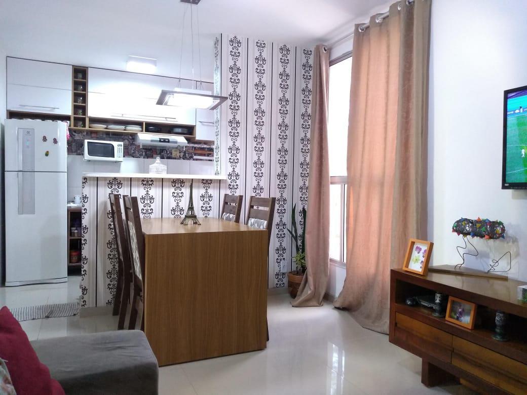 Prédio dentro de um residencial, com salão de festas, salão de jogos, porteiro físico 24 horas, 01 vaga de garagem livre e demarcada. lindo apartamento todo decorado com alto padrão de qualidade. 01 salão para 02 ambientes claro e arejado com sanca e teto rebaixado com iluminação indireta, piso em porcelanato, mesa para 04 pessoas, cozinha americana planejada, 02 quartos sendo 01 com armários e 01 infantil, banho social com bancada em granito, box em vidro temperado e armários. área de serviço. agende já sua visita.