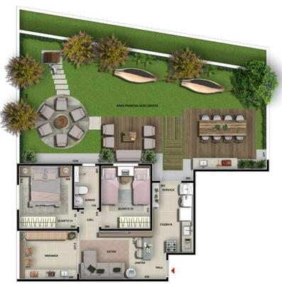 2 quartos com área de 51m², destacando-se pela varanda gourmet