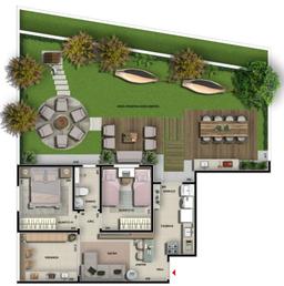 Dois Espaços Gourmet; Espaço churrasqueiro; Brinquedoteca; Espaço Fitness coberto; Playground descoberto; Pomar; Espaço Pet; Mini Quadra descoberta; Espaço Piquenique; Espaço Redes.