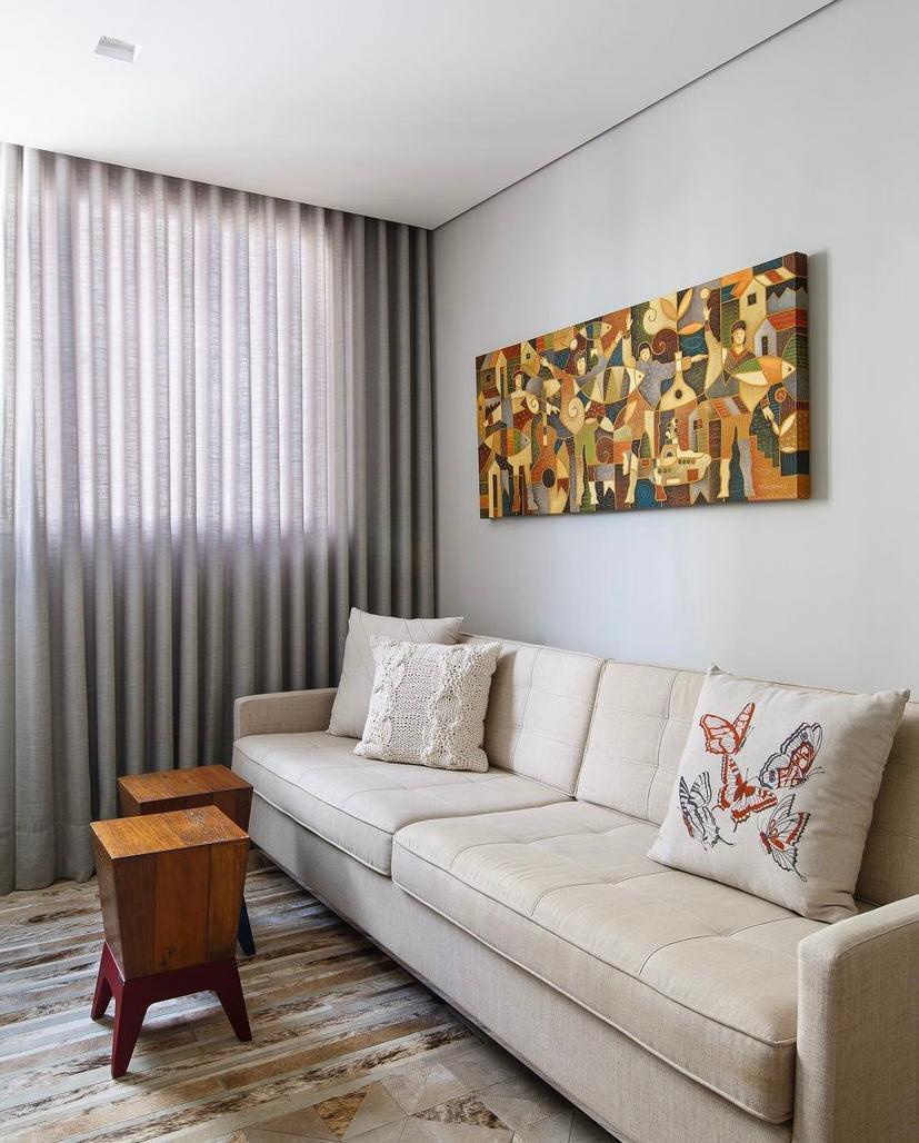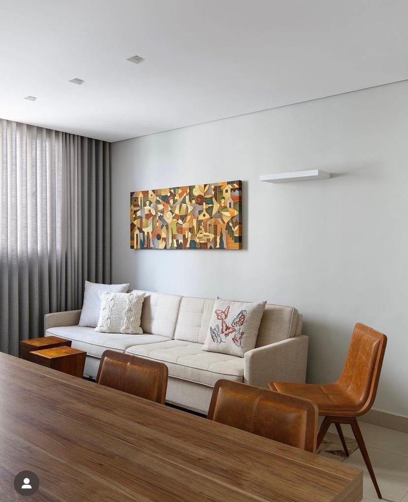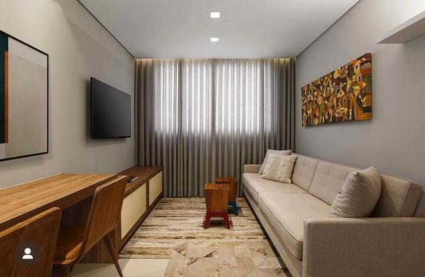 Sala para dois ambientes com rebaixamento em gesso e projeto de iluminação;
