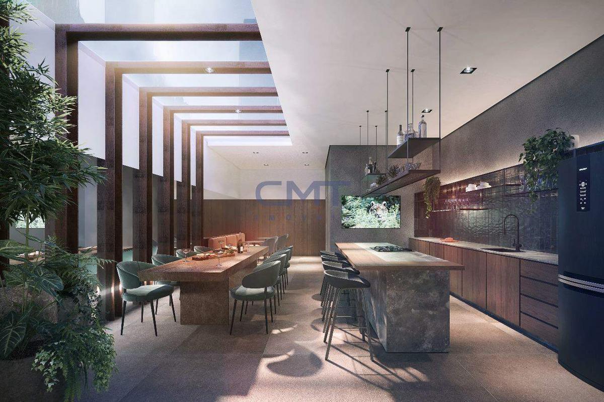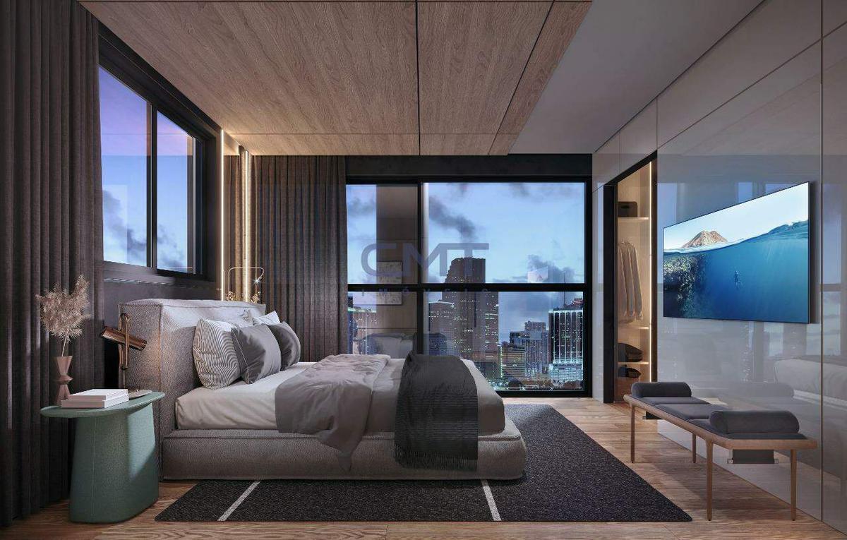 Edifício com fachada moderna em vidro, hall decorado, elevador codificado, salão de festas e espaço gourmet. Água e gás individualizados, persianas automáticas nos quartos, acabamento de alto luxo e infraestrutura para ar-condicionado.