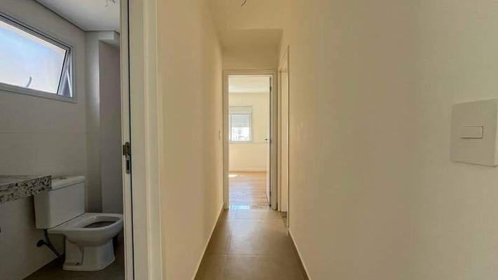 Sala ampla com piso em porcelanato e varanda integrada, 02 Quartos com piso em laminado de madeira, sendo uma suíte espaçosa com closet, banheiro social todo revestido em porcelanato e cozinha com bancada em granito e piso em porcelanato.