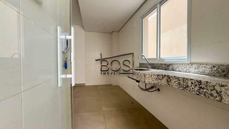 - Cozinha moderna com bancada em granito e piso em porcelanato, unindo praticidade e sofisticação.