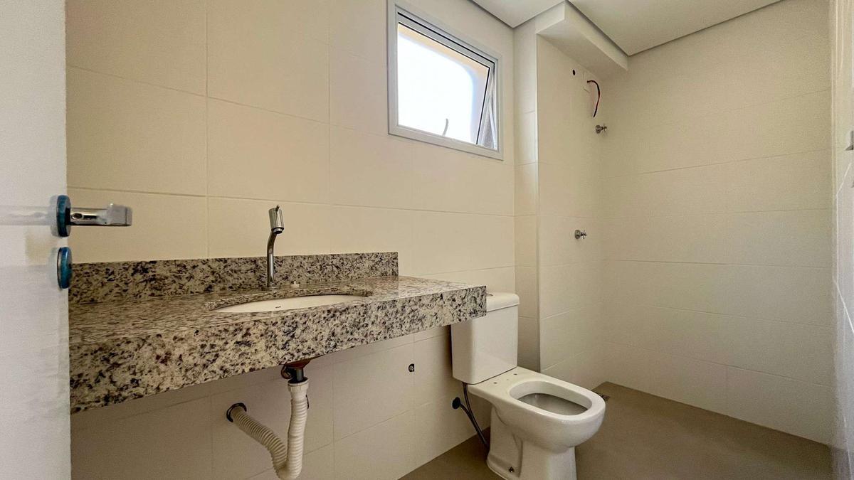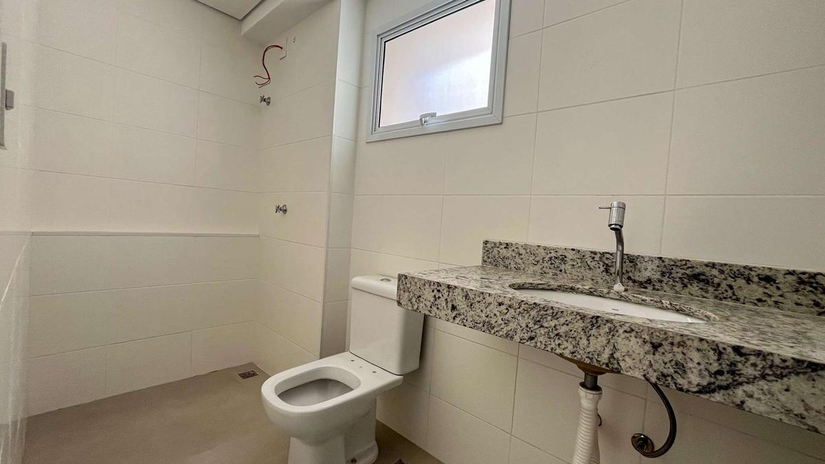 Banheiro social com acabamento de alto padrão, todo em porcelanato.