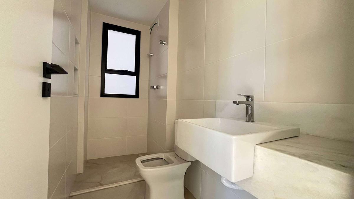 02 quartos amplos com piso em vinílico de madeira, todos com acesso a varanda, sendo uma suíte com pia em cuba