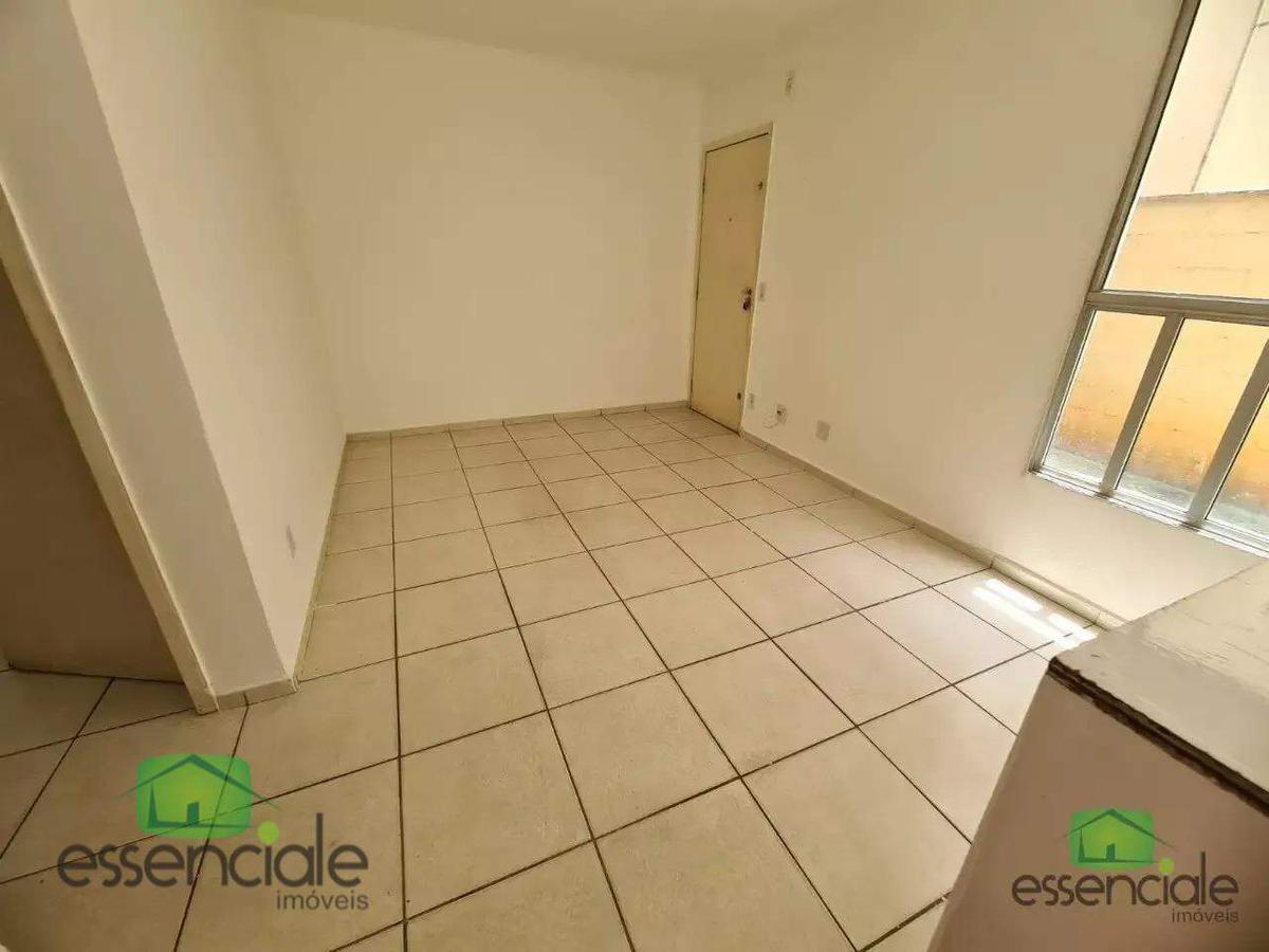 Apartamento de 2 quartos, Sala para 2 ambientes,1 banheiro social, Cozinha c/ Área de serviço, Área privativa de aproximadamente 10m², 1 vaga demarcada , Piso em cerâmica.