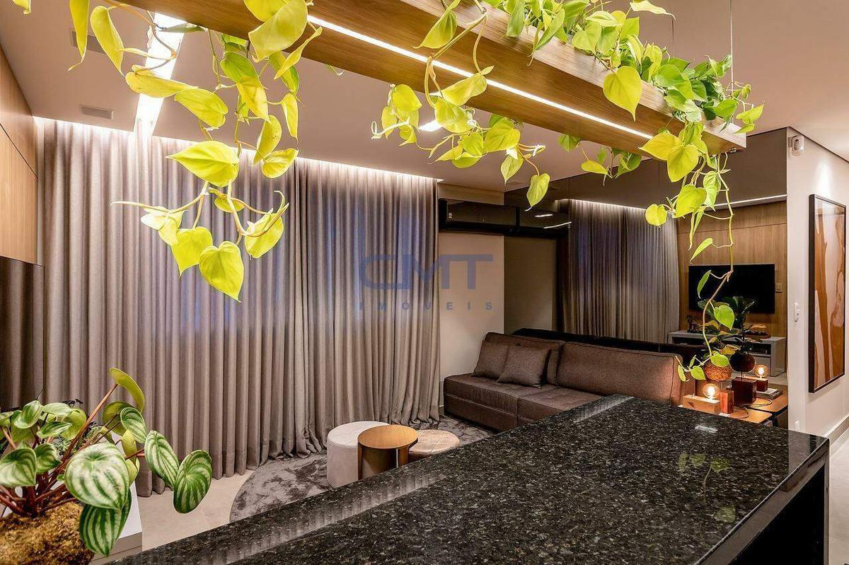 Sala é um dos pontos centrais do apartamento. Conta com grandes janelas que proporcionam excelente iluminação natural, criando um ambiente acolhedor e arejado. A marcenaria sob medida valoriza o espaço, e os acabamentos de alto padrão, aliados à iluminação cuidadosamente planejada, reforçam a sofisticação do ambiente. Ideal para receber amigos ou relaxar.