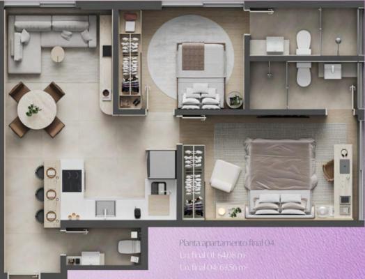 Infraestrutura: Porteiro virtual 24hrs; interfone; portão eletrônico; gás canalizado; água individual; elevador; piscina com deck; churrasqueira gourmet; fitness; locker p/ encomendas; CFTV; ponto p/ ar condicionado.