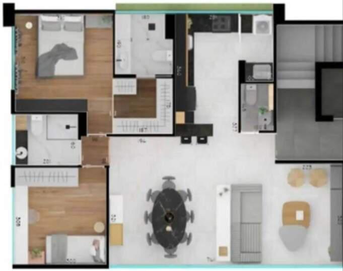 Sala ampla para 02 ambientes, vista panorâmica, lavabo, 02 quartos confortáveis sendo 01 suíte, banheiro social, cozinha espaçosa e funcional com bancada em granito preto e área de lavanderia