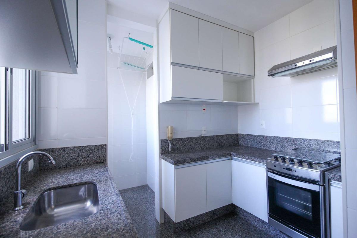 Cozinha Funcional: Cozinha em granito, muito bem planejada, com armários espaçosos.