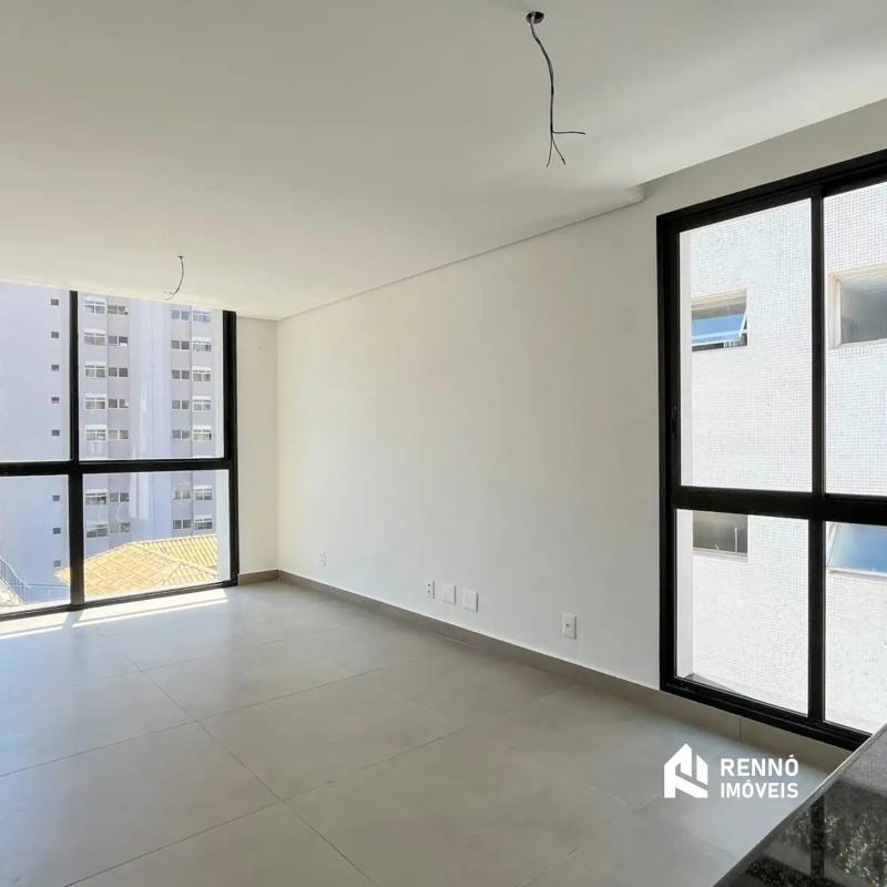 Apartamento no bairro Serra, conta com sala para dois ambientes em porcelanato conjugada à cozinha em granito, lavabo, área de serviço e 2 suítes com piso vinílico de madeira.