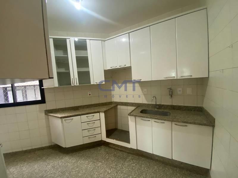 Cozinha funcional com armários planejados, bancadas e piso em granito.