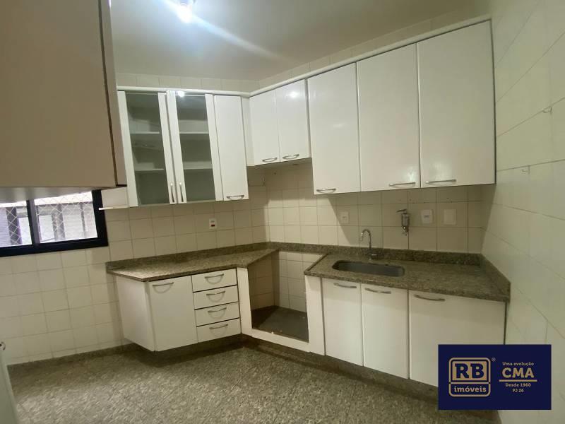 Cozinha funcional com armários planejados, bancadas e piso em granito.