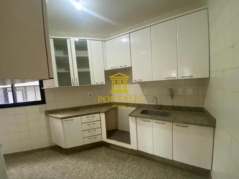 Cozinha funcional com armários planejados, bancadas e piso em granito.