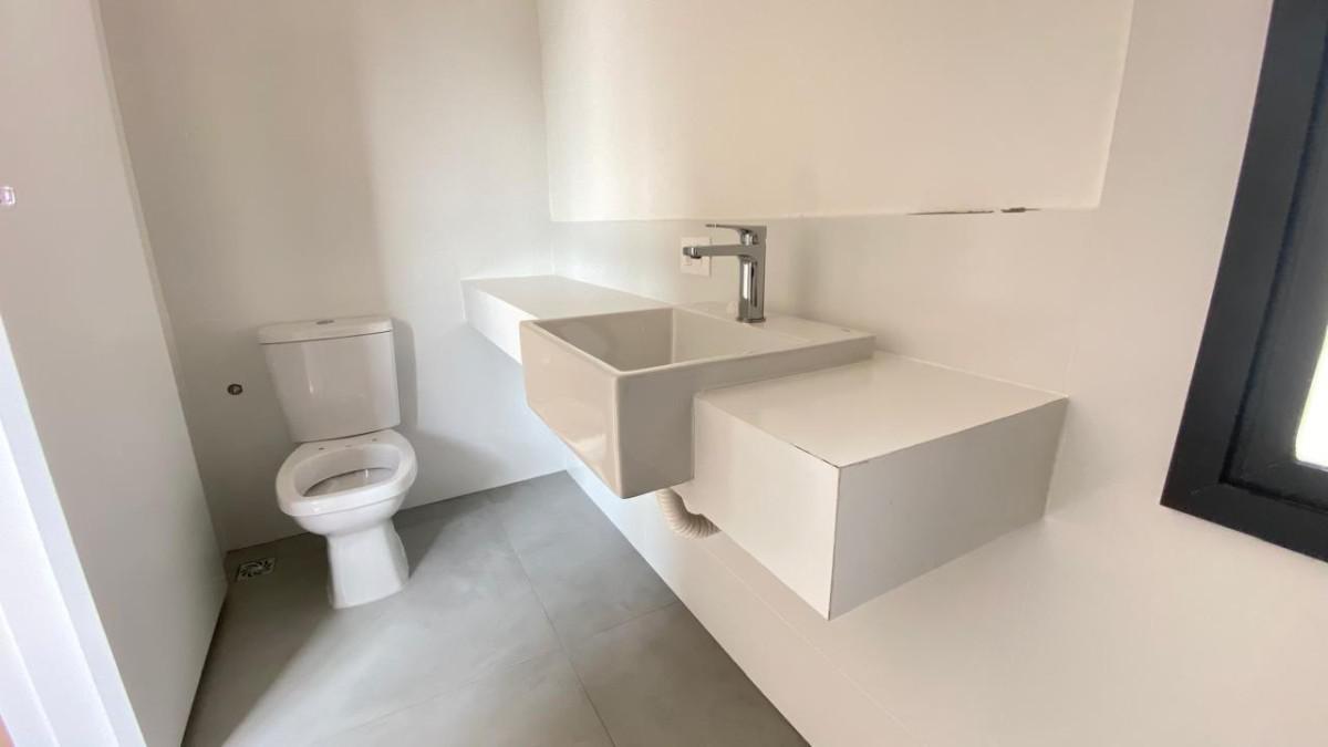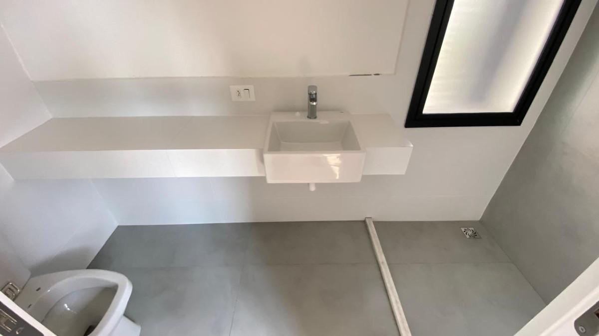 Sala para 02 ambientes piso porcelanato, lavabo com armário.