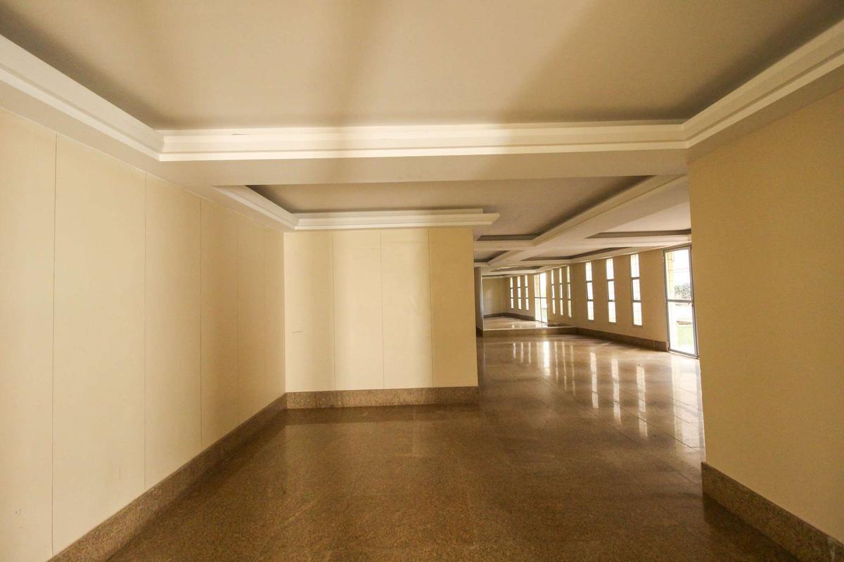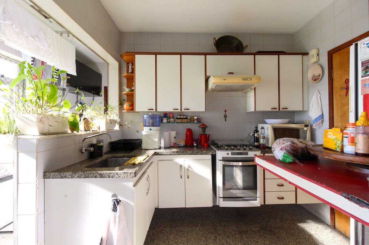Cozinha ampla, equipada com armários, bancada e piso em granito;