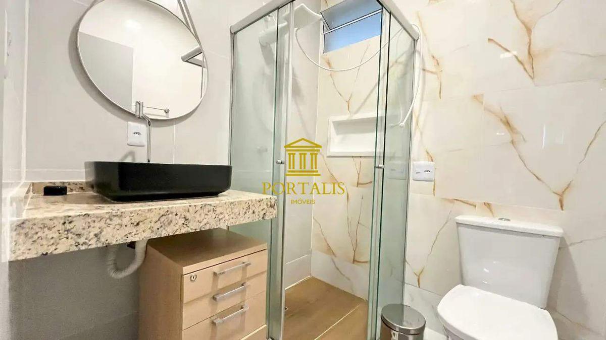 Banheiros (social e suíte) com acabamento de qualidade, espelho e box em blindex.
