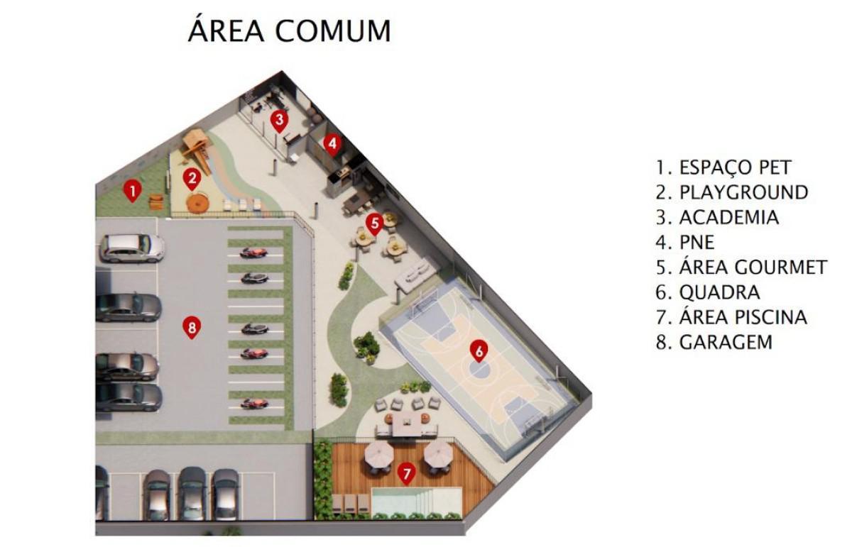 Área de lazer: Academia, Espaço Gourmet, Pet Place, Piscina, Playground, Quadra Poliesportiva.