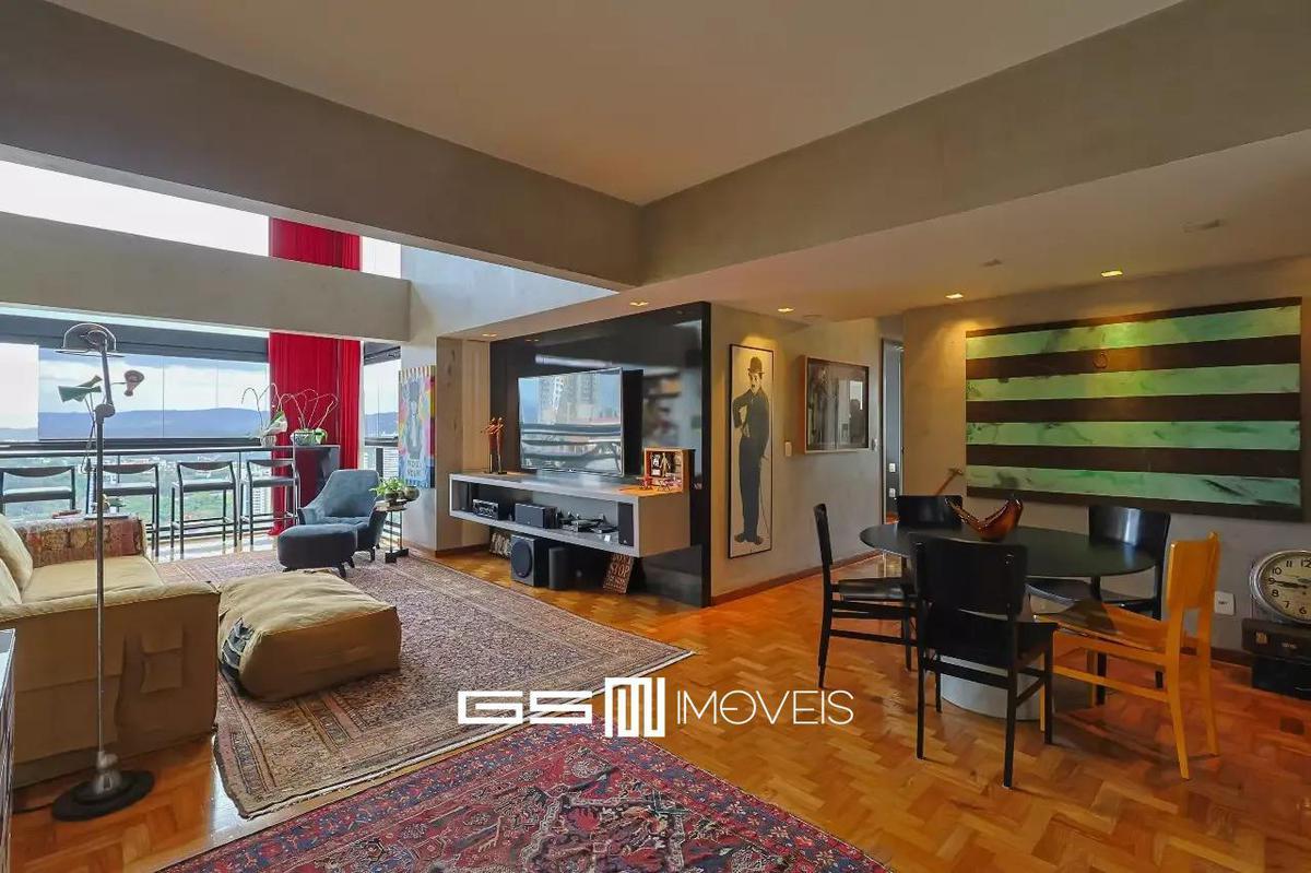 Sala para dois ambientes com varanda integrada, 2 quartos, sendo 1 suíte, lavabo e área de