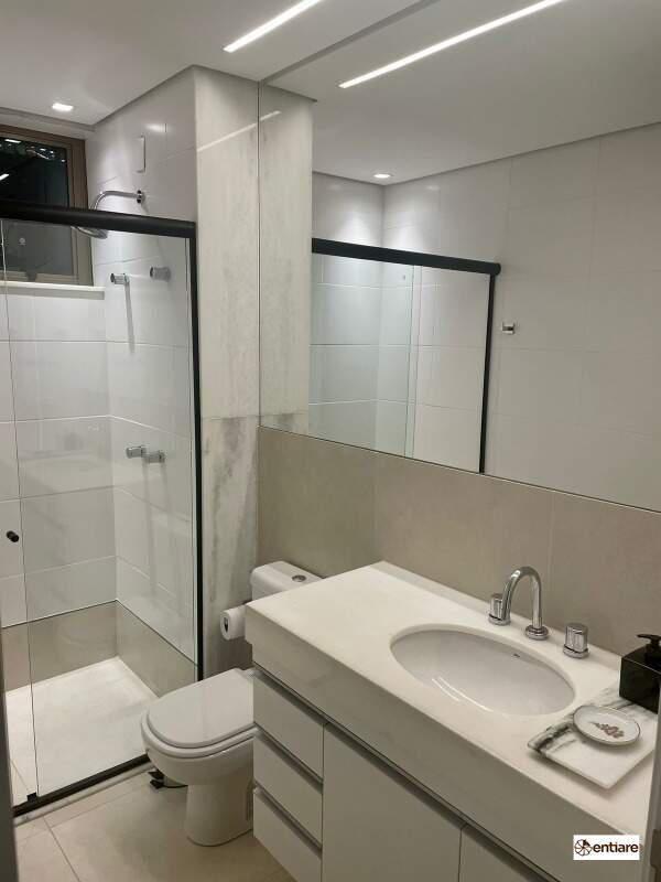 - Banhos: social e suíte com bancada, armários, box e espelhos.