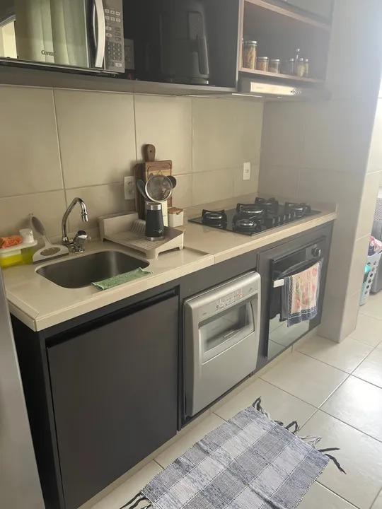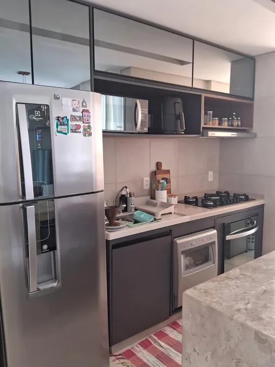 Apartamento com 02 quartos, sendo 01 suíte, sala ampla, 02 banheiros cozinha, área de serviço, 01 vaga de garagem e varanda. OBS: Todos os itens feito sob medida irão permanecer no imóvel. Ar condicionado, lava louças, forno e cooktop.